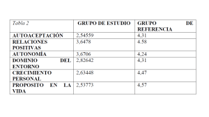 - – En lo referente al Crecimiento personal, la puntuación obtenida se refiere a una falta de sensación de desarrollo continuo, de progreso y de estar abierto a nuevas experiencias. Esta categoría es de máxima importancia para la intervención social, ya que supone la motivación y la fuerza interior necesaria para que un individuo se empodere.